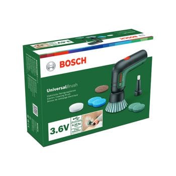| Phụ kiện đi kèm | Đầu chải lông cứng Bosch 1600A023KW; Đầu chải chi tiết Bosch 1600A023KY; Giá đỡ miếng chà Bosch 1600A023KX; Miếng chà Microfibre chống xước Bosch 1600A023KZ; Miếng chà mài mòn Bosch 1600A023L1; Dây sạc; Hộp giấy |