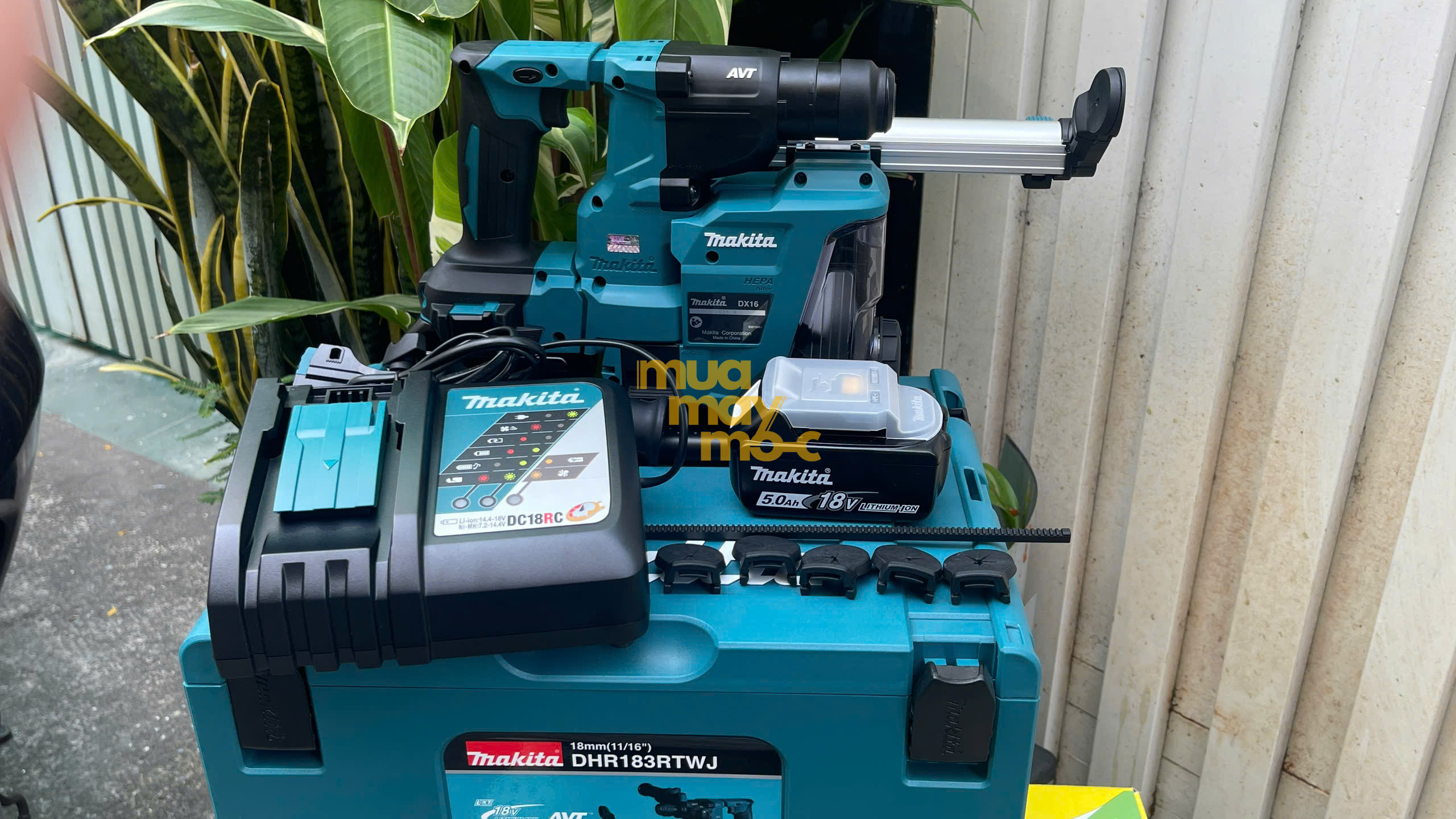 Hình 1: Trọn bộ Makita DHR183RTWJ đi kèm hệ thống hút bụi DX16 chuyên nghiệp