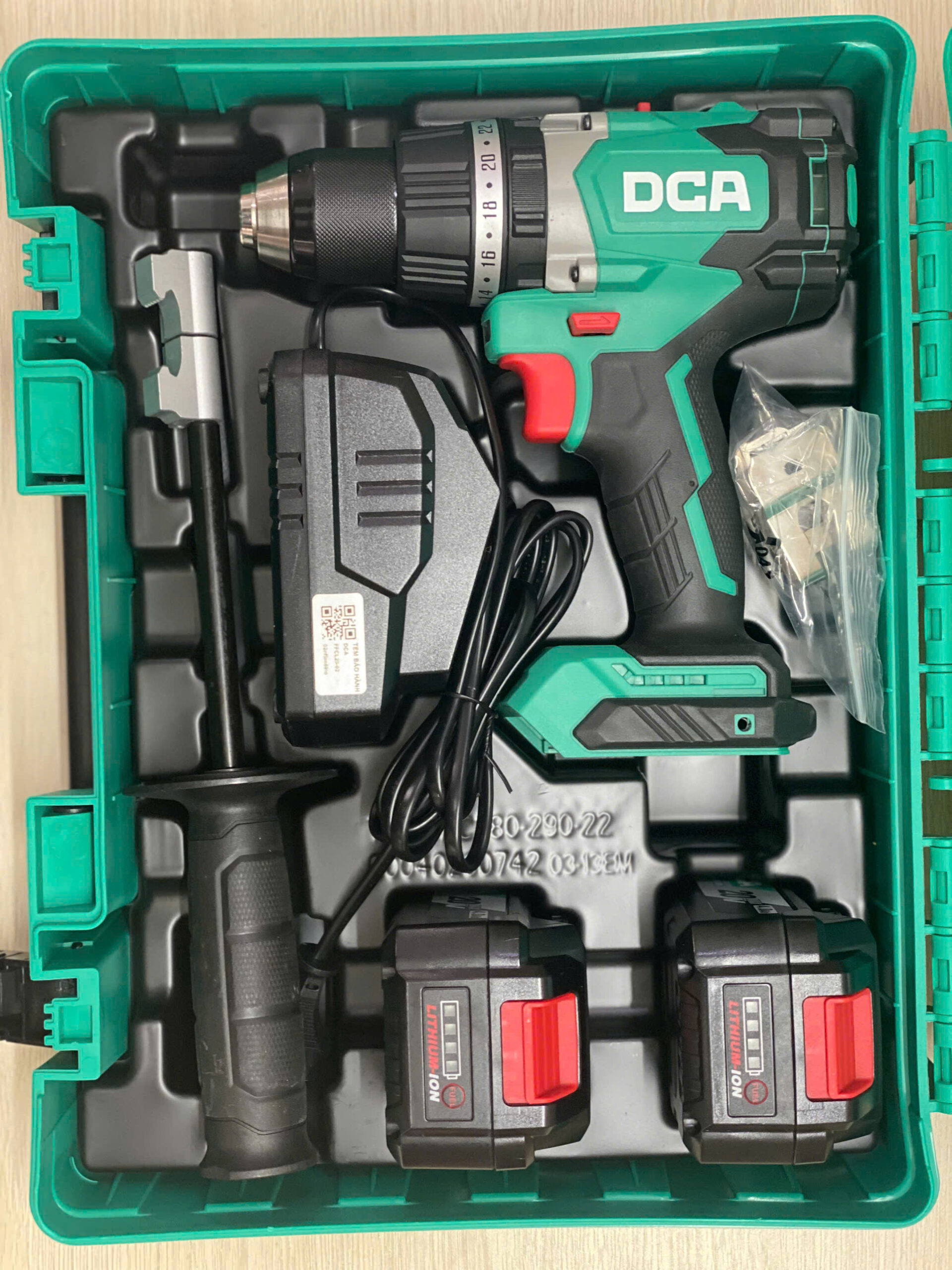 Bộ sản phẩm đi kèm 2 pin 4.0Ah, 1 sạc và valy giúp bạn dễ mang theo khi làm công trình, đồng thời thuận tiện xoay ca làm việc (một pin dùng – một pin sạc). Với momen xoắn 120N.m, đầu kẹp 1.5–13mm và tốc độ làm việc linh hoạt, DCA ADJZ03-13EM phù hợp cho thợ điện nước, nội thất, cơ khí lắp ráp, đội bảo trì và người dùng cần một bộ máy khoan vặn vít dùng pin gọn gàng, hiệu quả.