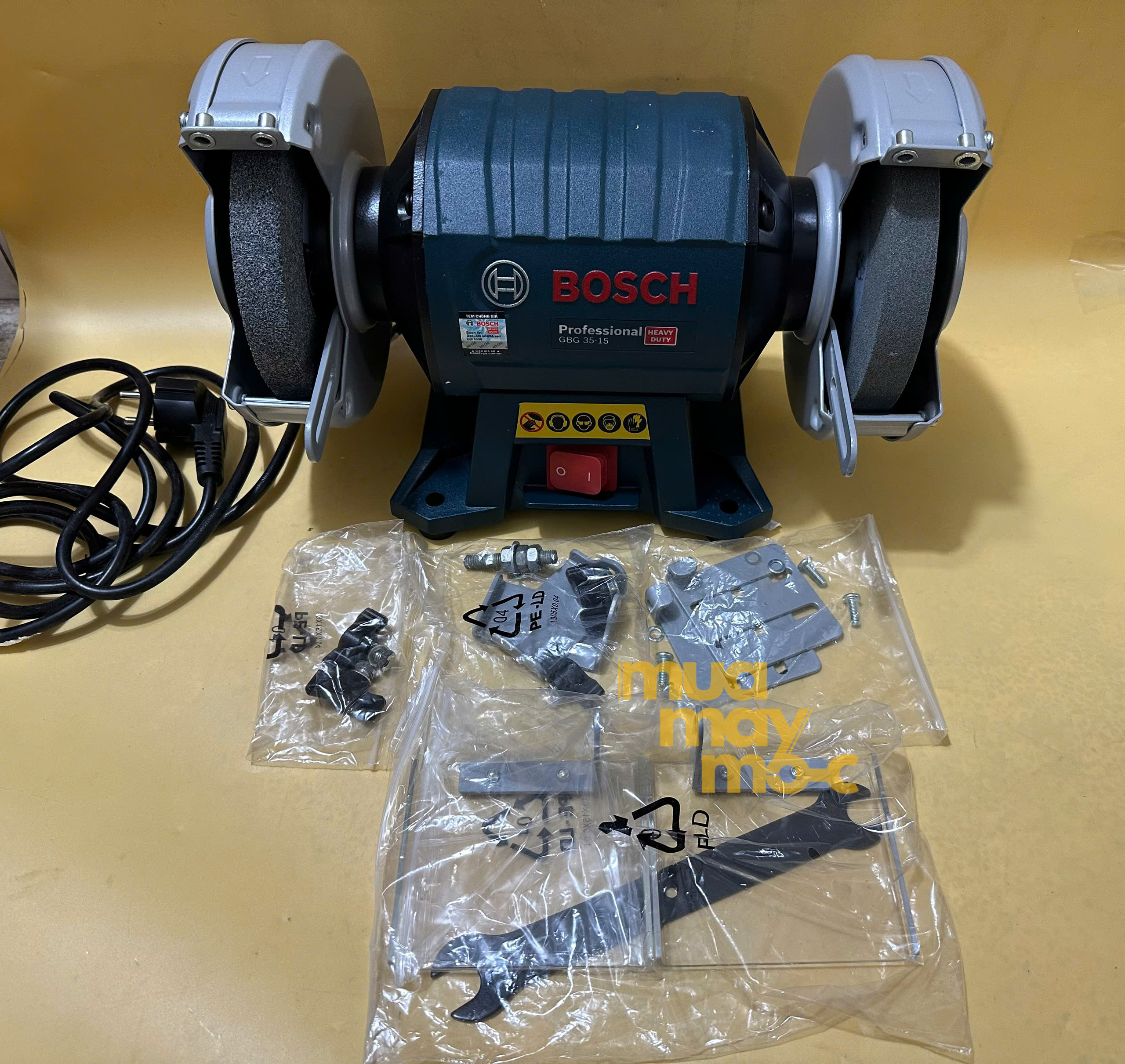 Máy mài bàn Bosch GBG 35-15 là lựa chọn hàng đầu cho các xưởng cơ khí, thợ hàn chuyên nghiệp và cả những người dùng tại gia. Với công suất 350W mạnh mẽ, máy dễ dàng xử lý các công việc mài, đánh bóng, làm sắc dao cụ một cách nhanh chóng và hiệu quả. Thiết kế chắc chắn, độ bền cao cùng khả năng điều chỉnh tốc độ linh hoạt, GBG 35-15 mang đến trải nghiệm làm việc tối ưu và an toàn. Chọn Bosch GBG 35-15 để nâng cao năng suất và chất lượng công việc của bạn!