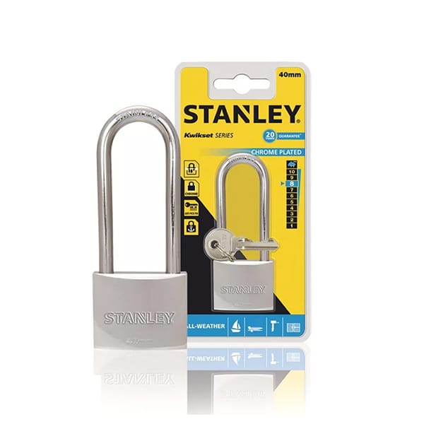 Ổ Khóa Chrome trắng, càng dài, rộng 40mm Stanley USA S742-016